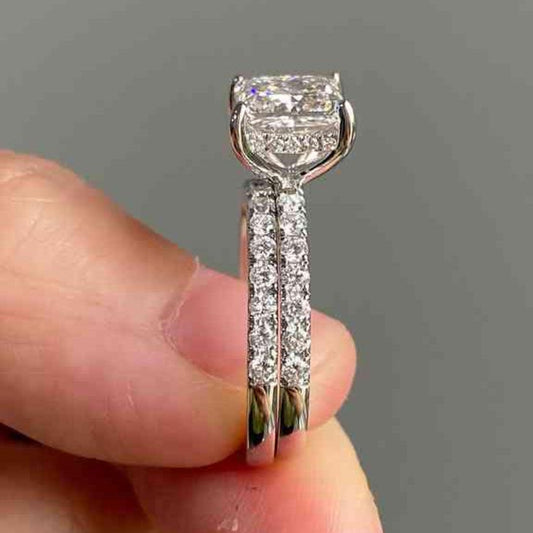 2.35 Ct Princess Cut Lab Grown Diamond Bridal Set Luxury Wedding Engagement Ring