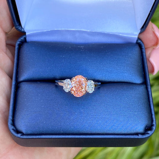 2.60Ct Oval Cut Intense Pink Lab Grown Diamond Three Stone Engagement Ring