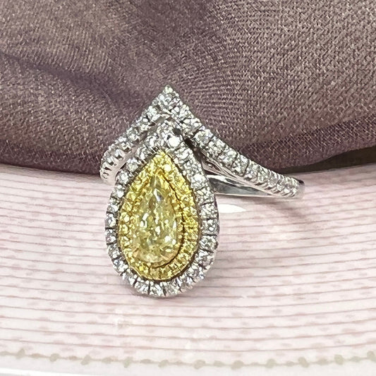 2.77CT Pear Cut Fancy Intense Yellow Lab Grown Diamond Proposal Engagement Ring