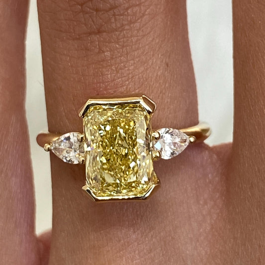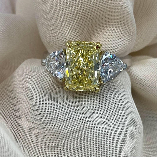 3.51TCW Radiant Cut Intense Yellow Lab Grown Diamond 3 Stone Engagement Ring