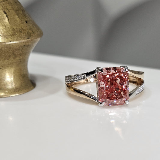 3.15 CT Radiant Cut Pink Lab-Grown Diamond Ultimate Design Engagement Ring