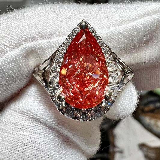 3.20TCW Pear Cut Vivid Pink Lab Grown Diamond Halo Split Shank Engagement Ring
