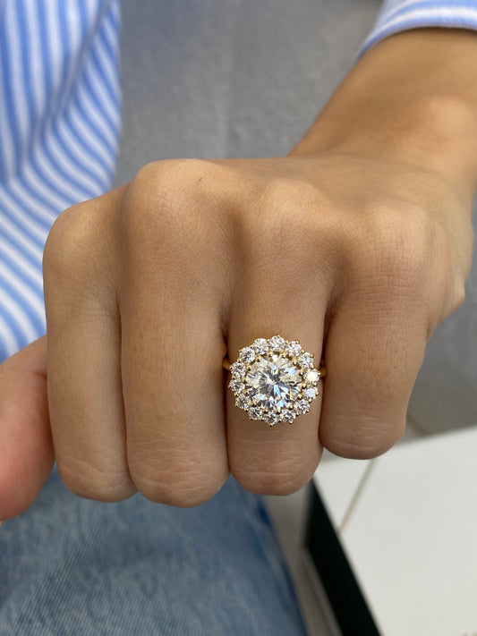 3.4 CT Round Cut Lab Grown Diamond Halo Set Engagement Ring 14kt Gold Flower Ring
