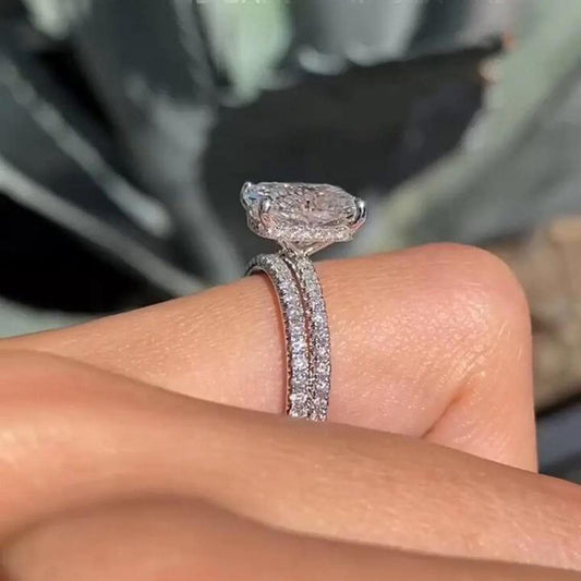 3.43CT Elongated Cushion Cut Lab Grown Diamond Hidden Halo Bridal Set Engagement Ring