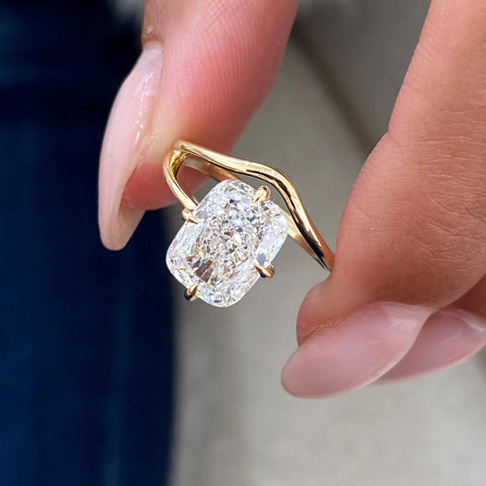 5.15 CT Unique Cushion Cut Lab-Grown Diamond Hidden Halo Set Engagement Ring