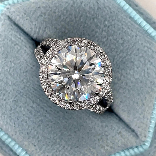 5.55CT Round Cut Lab Grown Diamond Split Shank Classic Style Halo Engagement Ring