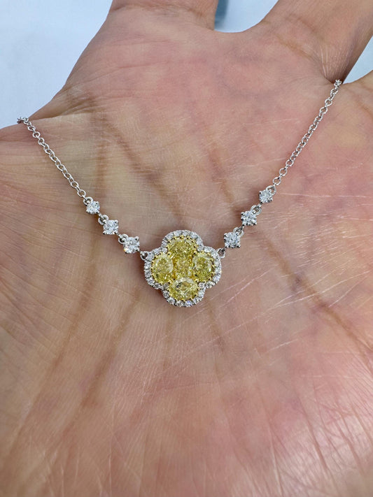 14K White Gold Fancy Yellow Lab Grown Diamond Flower Pendant Necklace