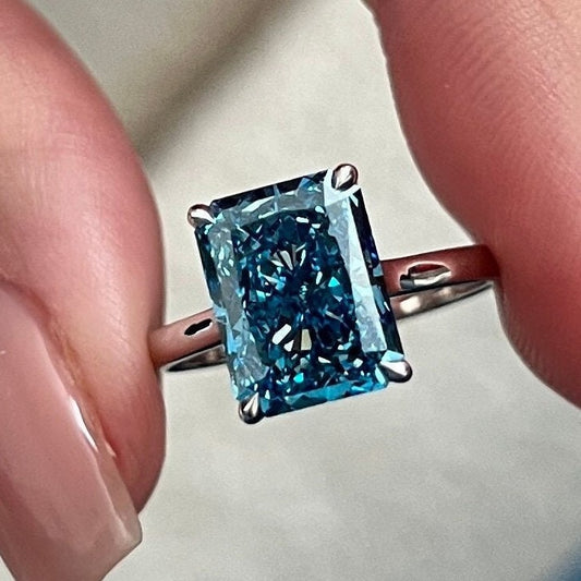 3CT Radiant Fancy Vivid Blue Lab Grown Diamond Unique Solitaire Engagement Ring