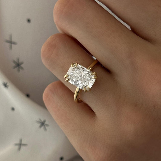 4 CT Elongated Cushion Lab Grown Diamond Hidden Halo Double Claw Prong Engagement Ring