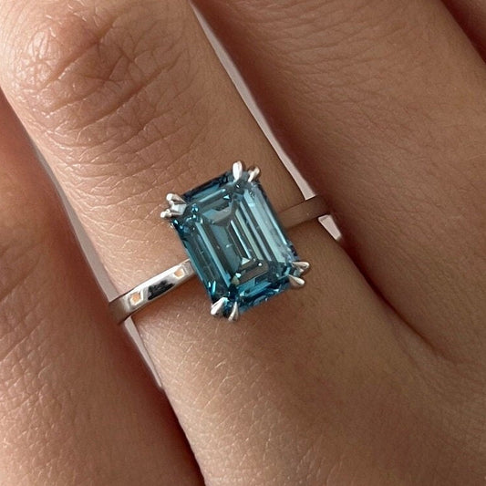4 Carat Emerald Cut Fancy Vivid Blue Diamond Solitaire Engagement Ring