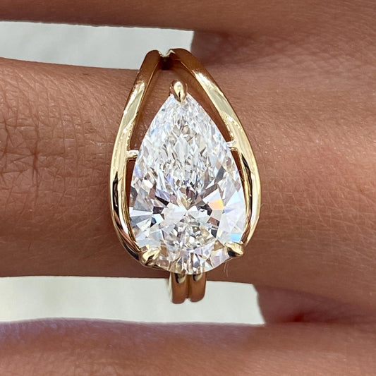 5 Ct Pear Cut Lab Grown Split Shank Solitaire Elongated Diamond Engagement Ring