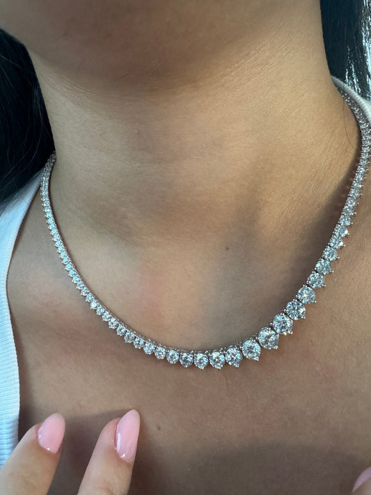 17 Carat Round Cut Moissanite diamonds14kt gold Graduated Tennis Necklace