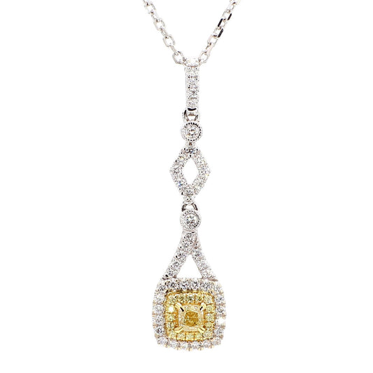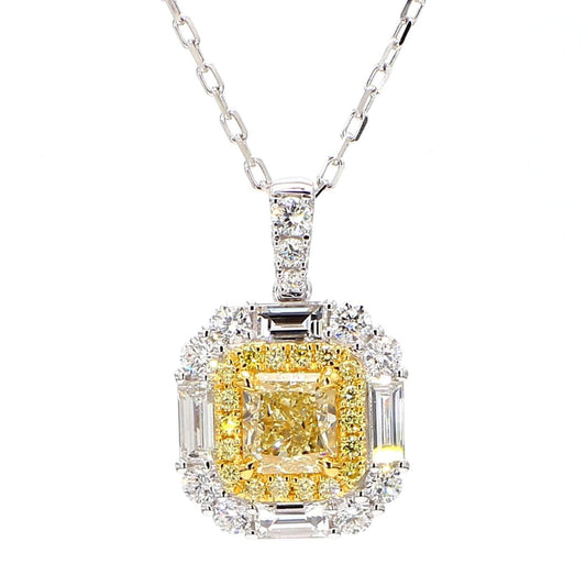 1.23TCW Intense Yellow Cushion Cut Lab Grown Diamond Drop Halo beautiful pendant
