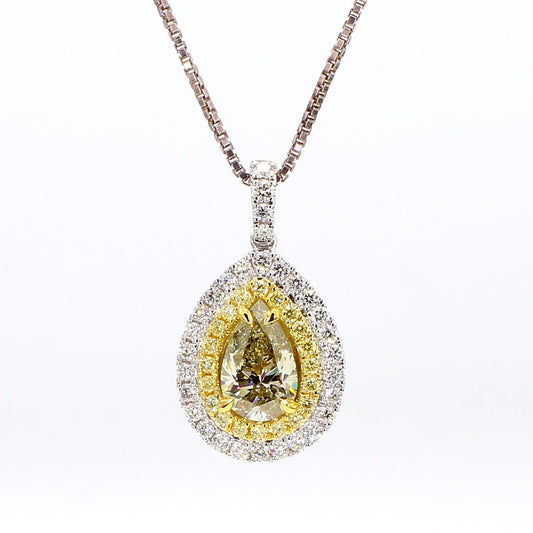 1.47TCW Intense Yellow Pear Cut Lab Grown Diamond Drop Halo Gem World's beautiful pendant