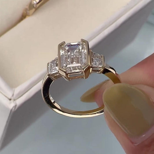 4 CT Emerald Moissanite Diamond Half Bezel Three Stone Beautiful Engagement Ring