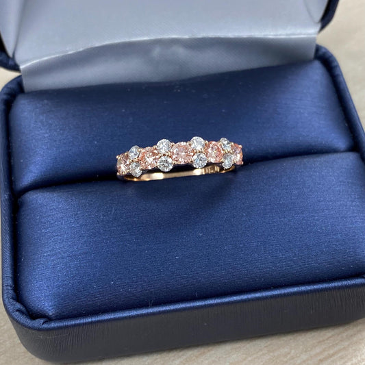 1Ct Pink and White Round Cut Lab Grown Diamond 13 Stone Anniversary Wedding Band
