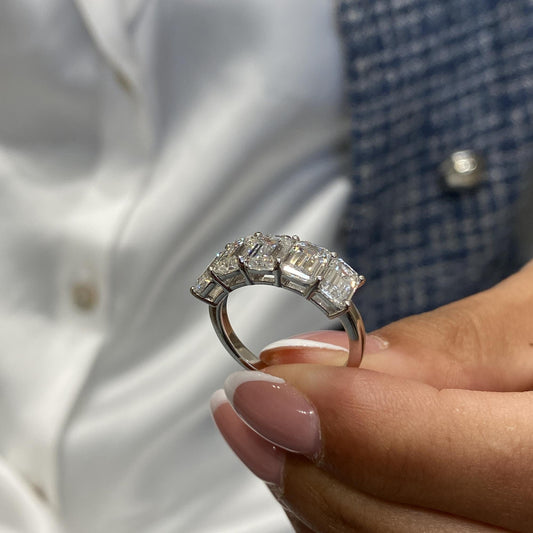 Elegant Five Stone Emerald Cut 4.01 Ct Lab Grown Diamond Prong Setting Luxury Ring