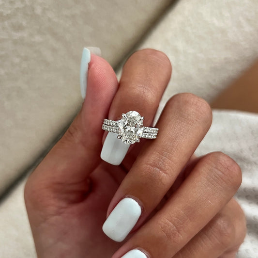 2.62 CT Oval Cut Lab Grown Diamond Hidden Halo Pave Set Engagement Bridal Set