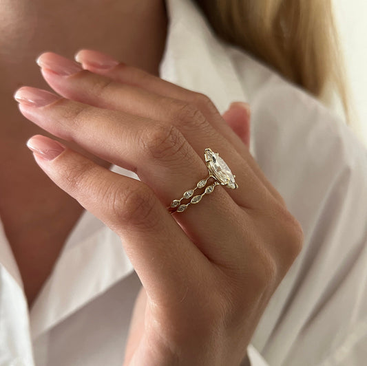 2.65 CT Elongated Oval & Marquise Cut Lab Grown Diamond Thin Engagement Bridal Set