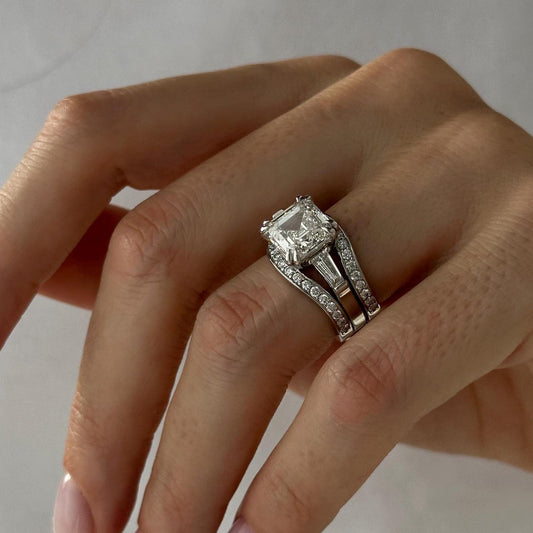 3.22 CT Asscher Cut Lab Grown Diamond Enhancer Perfect Engagement Ring Bridal Set